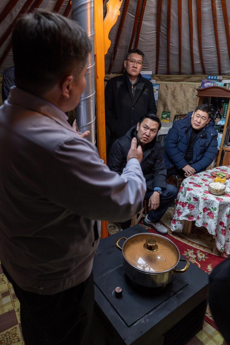 Тус хуралдааны дараа Ерөнхий сайд Л.Оюун-Эрдэнэ Баянзүрх дүүргийн 13 дугаар хорооны иргэн Б.Төгсжаргалынд очлоо. Тэднийх хийн түлшний зуух суурилуулаад долоо хонож буй ажээ. Нүүрс, үнстэй зууралдахгүй, цэвэрхэн, тохитой байхаас гадна гэрийн дулаан алдалтаа бүрэн шийдчихвэл бага зардлаар дулаан байх бүрэн боломжтой байна гэдгийг Б.Төгсжаргал ярилаа. Тус дүүргийн 30 гаруй айл өрх ийм зуухтай болжээ. Цаашид бусад дүүрэгт зорилтот бүсийн айл өрхийг хийн түлшинд хамруулах ажлыг үе шаттай зохион байгуулахаар төлөвлөснөө нийслэлийн удирдлагууд энэ үеэр танилцууллаа. Ерөнхий сайд Л.Оюун-Эрдэнэ “дулаан гэр”-ийн стандарт бий болгож, өртөг багатай, иргэдийн худалдан авах чадварт нийцсэн дулаалгын технологи, материалуудыг олон нийтэд танилцуулах нь зүйтэй гэдгийг хэллээ.