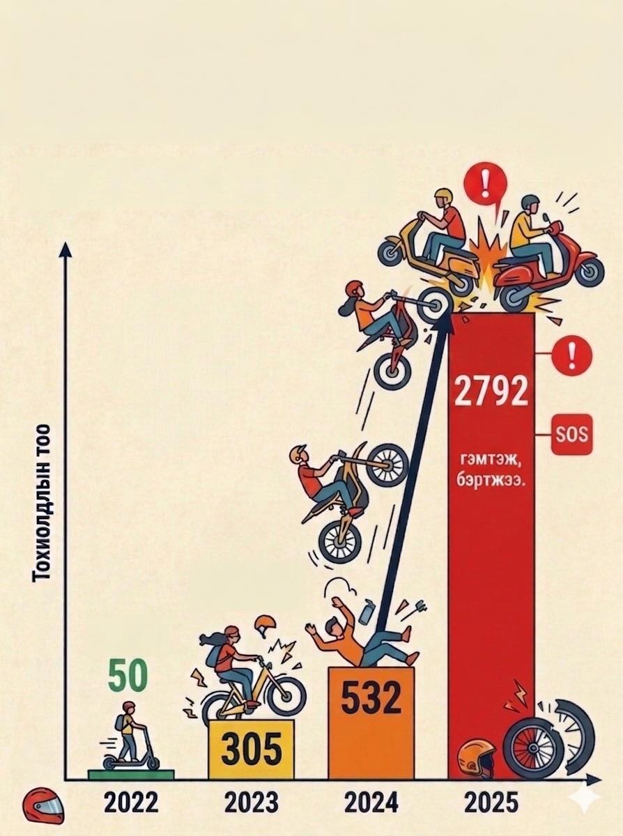 Цахилгаан дугуй, мотоцикл, скүүтэр, мопед зэрэг тээврийн хэрэгслээс үүдэлтэй осол гэмтлийн тоо зургаа дахин өсчээ.