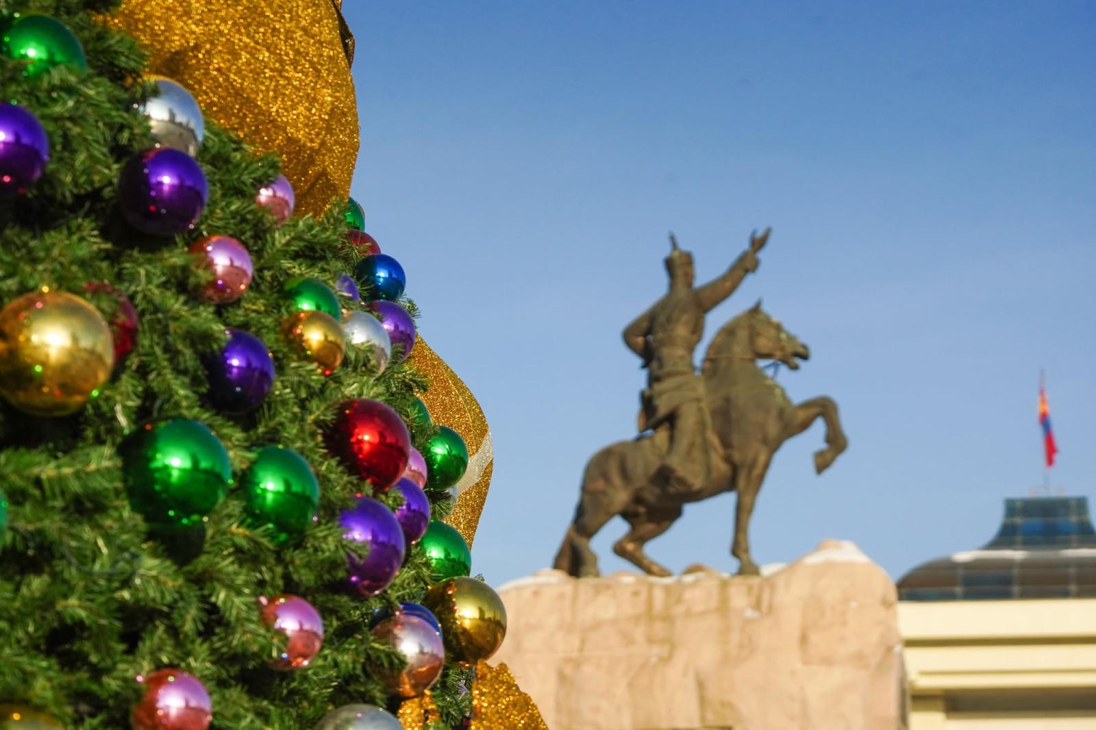 Шинэ жилийн баярыг угтан төв талбайн сүлд модыг засаж дууслаа. Уг сүлд мод нь 22 метр өндөртэй, 12 диаметр өргөнтэй, 800 орчим шилмүүстэй юм. Сүлд модыг 2000 цэгэн гэрэл, биет тоглоомоор чимэглэлээ.